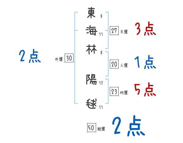 外運![]() | 東海林陽毬さんの外運は30画の2つ星!浮き沈みの激しさに注意しましょう。 生活面を象徴する運勢です。外部から受ける影響力を表し、結婚運、家庭運や職場、環境への順応性を表します。 |