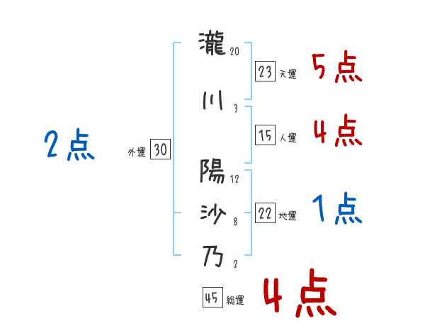 総運![]() | 瀧川陽沙乃さんの総運は45画の4つ星!もくもくと物事を進め達成する。地味な努力家。 あなたの人生を表す1番重要な運勢です。生涯を通じて影響する総合運となり、主に50歳以降の晩年期に影響を及ぼします。 |