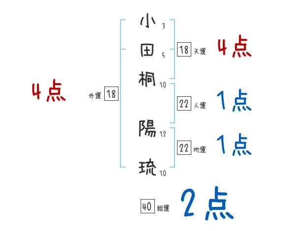 小田桐陽琉さんの画数の鑑定結果