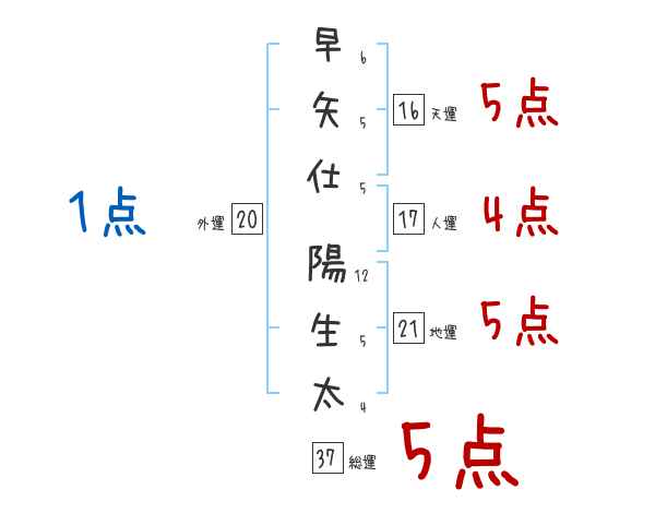 早矢仕陽生太さんの画数の鑑定結果