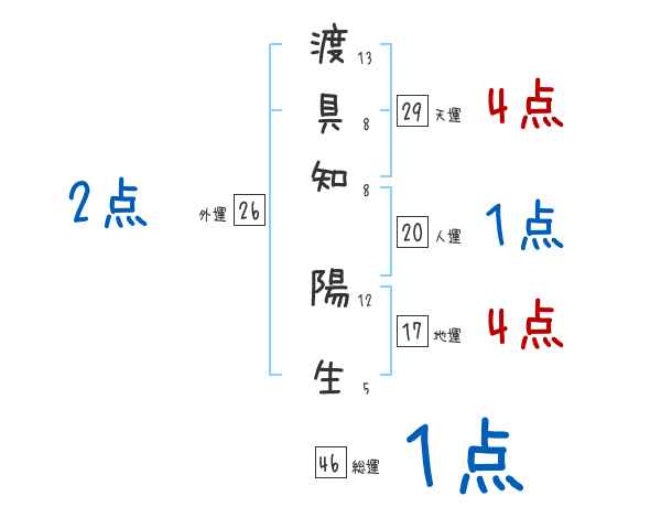 渡具知陽生さんの画数の鑑定結果