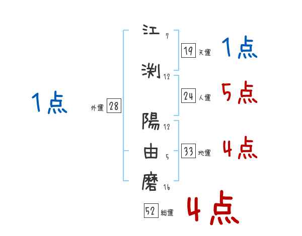 江渕陽由磨さんの画数の鑑定結果