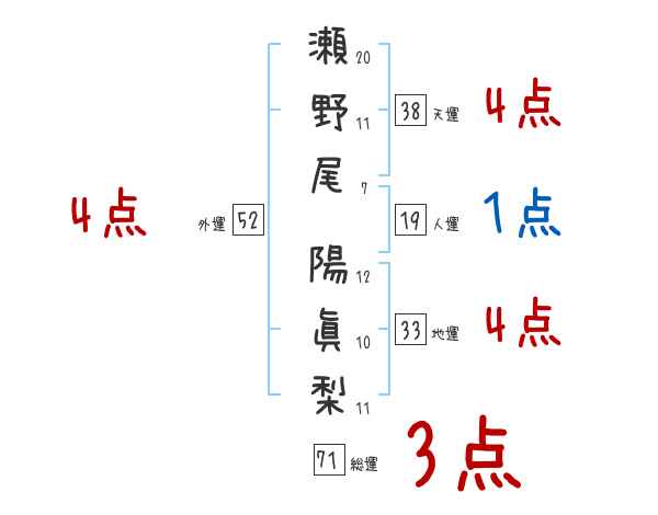 瀬野尾陽眞梨さんの画数の鑑定結果