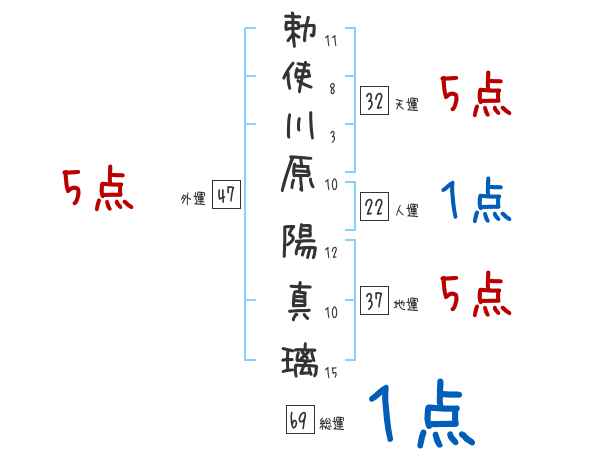 勅使川原陽真璃さんの画数の鑑定結果