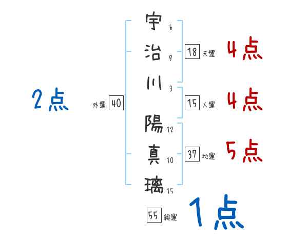 宇治川陽真璃さんの画数の鑑定結果