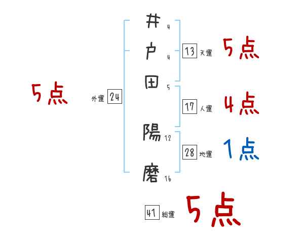 井戸田陽磨さんの画数の鑑定結果