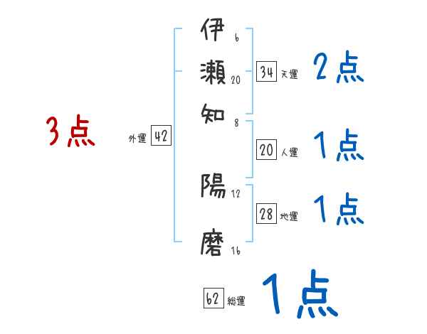 外運![]() | 伊瀬知陽磨さんの外運は42画の3つ星!病気に注意。多芸であるが消極的でおとなしい。 生活面を象徴する運勢です。外部から受ける影響力を表し、結婚運、家庭運や職場、環境への順応性を表します。 |