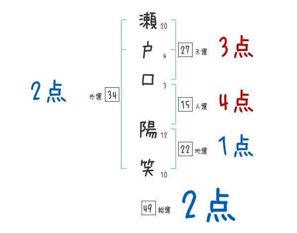 瀬戸口陽笑さんの画数の鑑定結果