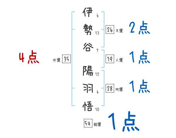 伊勢谷陽羽悟さんの画数の鑑定結果