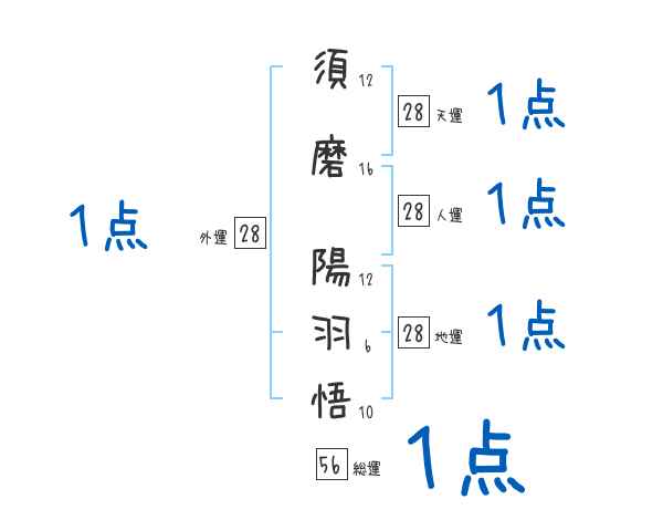 天運![]() | 須磨陽羽悟さんの天運は28画の1つ星!家庭環境に注意。スポーツで活躍できる能力があるかも。 家系が持つ宿命的な運勢を表します。祖先から受け継いだ苗字ですので自分の力が及びません。家柄を象徴します。 |