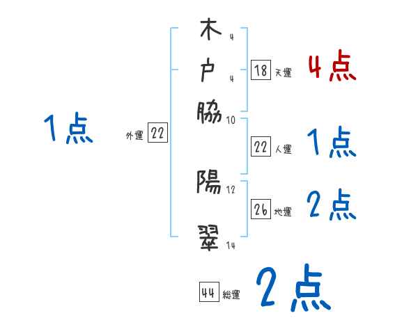 天運![]() | 木戸脇陽翠さんの天運は18画の4つ星!情熱的で剛気。忍耐力があり信頼される。 家系が持つ宿命的な運勢を表します。祖先から受け継いだ苗字ですので自分の力が及びません。家柄を象徴します。 |