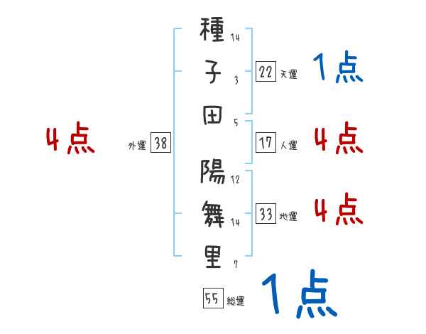 種子田陽舞里さんの画数の鑑定結果
