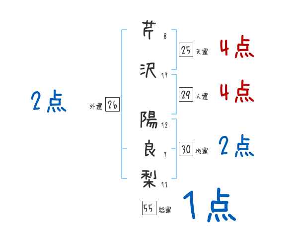 芹沢陽良梨さんの画数の鑑定結果
