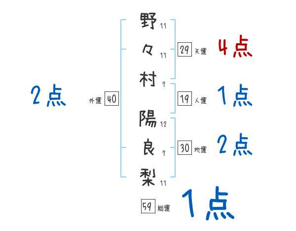 野々村陽良梨さんの画数の鑑定結果