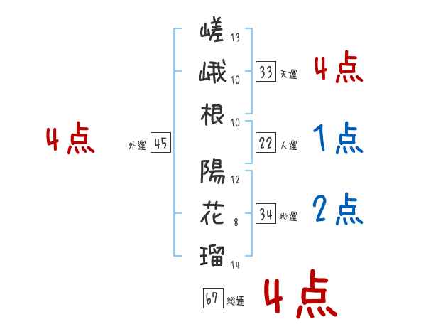 嵯峨根陽花瑠さんの画数の鑑定結果