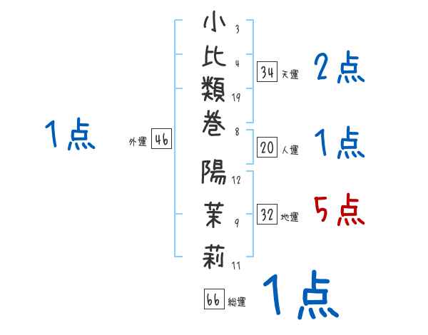 小比類巻陽茉莉さんの画数の鑑定結果