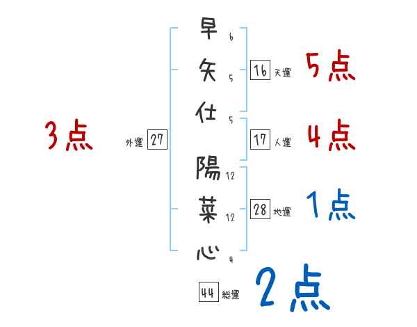 早矢仕陽菜心さんの画数の鑑定結果