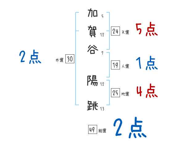 加賀谷陽跳さんの画数の鑑定結果