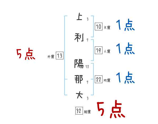 上利陽那大さんの画数の鑑定結果