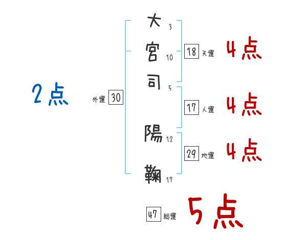 外運![]() | 大宮司陽鞠さんの外運は30画の2つ星!浮き沈みの激しさに注意しましょう。 生活面を象徴する運勢です。外部から受ける影響力を表し、結婚運、家庭運や職場、環境への順応性を表します。 |