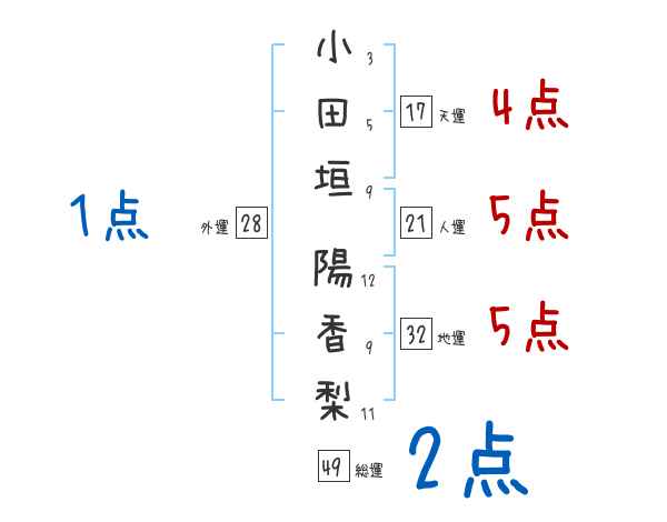 小田垣陽香梨さんの画数の鑑定結果