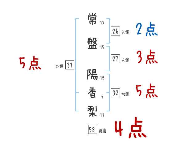 常盤陽香梨さんの画数の鑑定結果