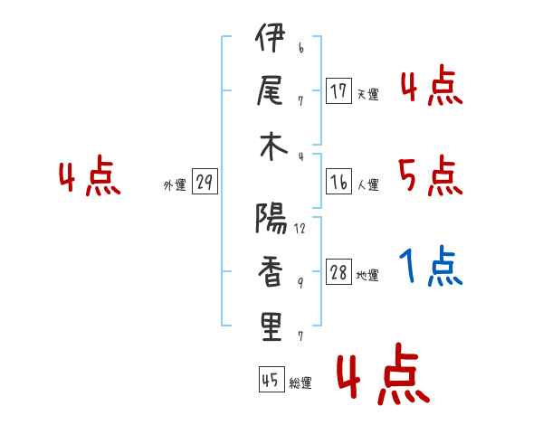 天運![]() | 伊尾木陽香里さんの天運は17画の4つ星!積極的な行動力。地位を気づき財産を手に入れる。純粋な心と直感力。 家系が持つ宿命的な運勢を表します。祖先から受け継いだ苗字ですので自分の力が及びません。家柄を象徴します。 |