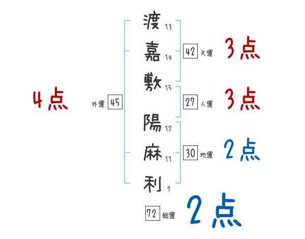 渡嘉敷陽麻利さんの画数の鑑定結果