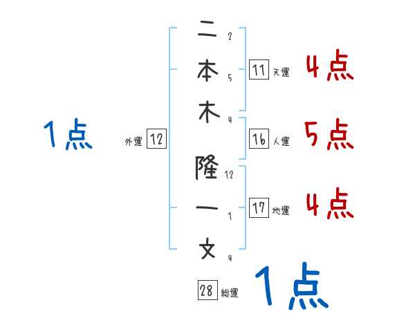 二本木隆一文さんの画数の鑑定結果