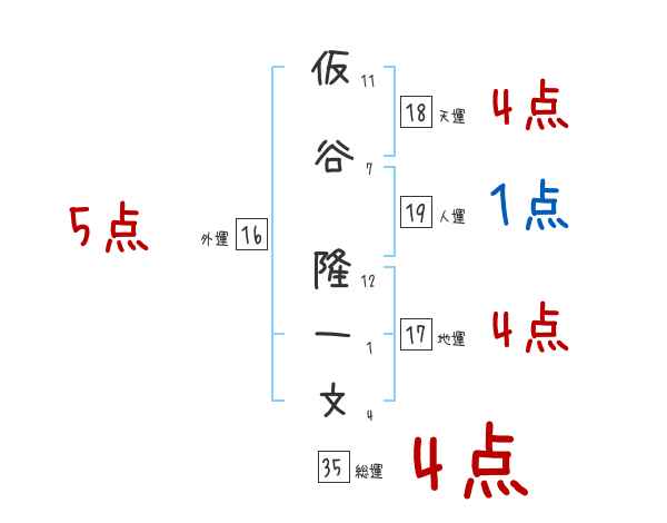 仮谷隆一文さんの画数の鑑定結果