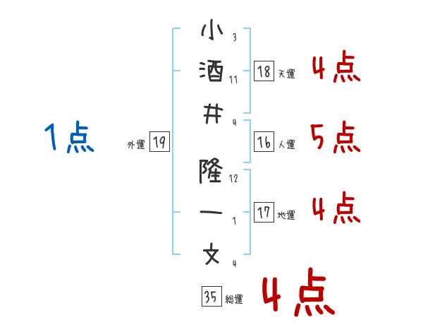 小酒井隆一文さんの画数の鑑定結果