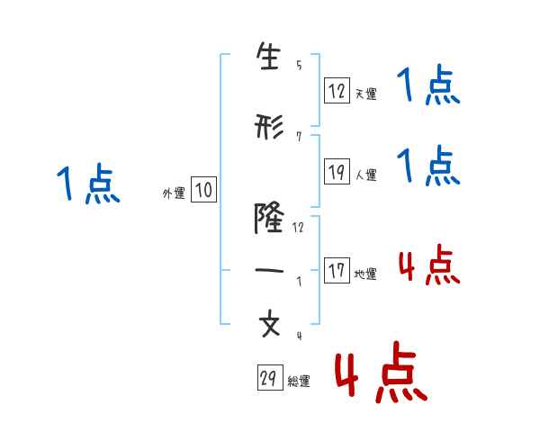 生形隆一文さんの画数の鑑定結果