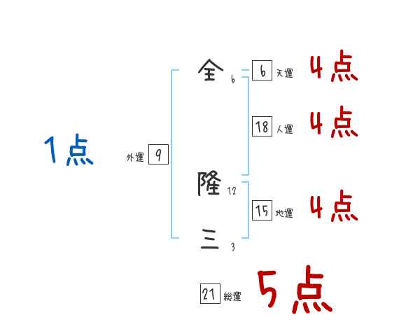 全隆三さんの画数の鑑定結果