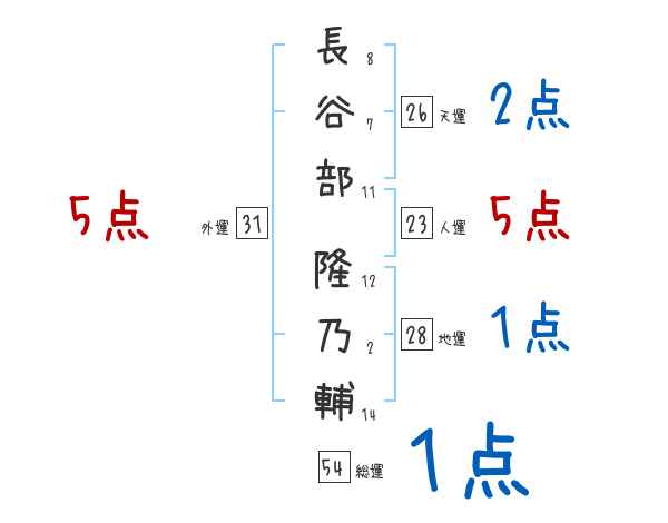長谷部隆乃輔さんの画数の鑑定結果