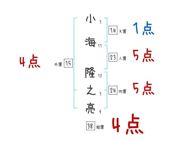 小海隆之亮さんの画数の鑑定結果