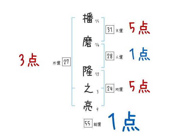 播磨隆之亮さんの画数の鑑定結果
