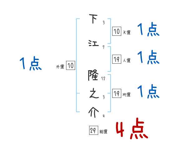 下江隆之介さんの画数の鑑定結果