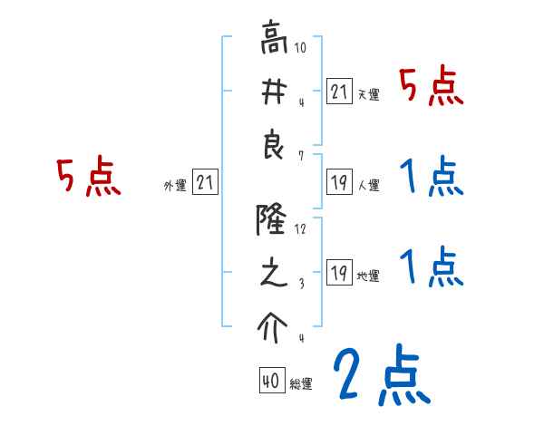 高井良隆之介さんの画数の鑑定結果