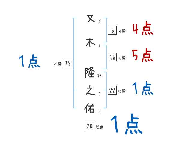 総運![]() | 又木隆之佑さんの総運は28画の1つ星!家庭環境に注意。スポーツで活躍できる能力があるかも。 あなたの人生を表す1番重要な運勢です。生涯を通じて影響する総合運となり、主に50歳以降の晩年期に影響を及ぼします。 |