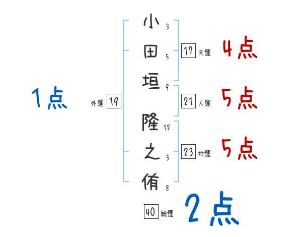 小田垣隆之侑さんの画数の鑑定結果