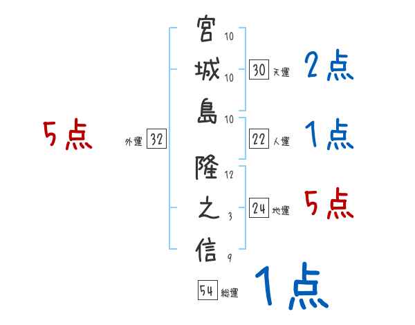 宮城島隆之信さんの画数の鑑定結果
