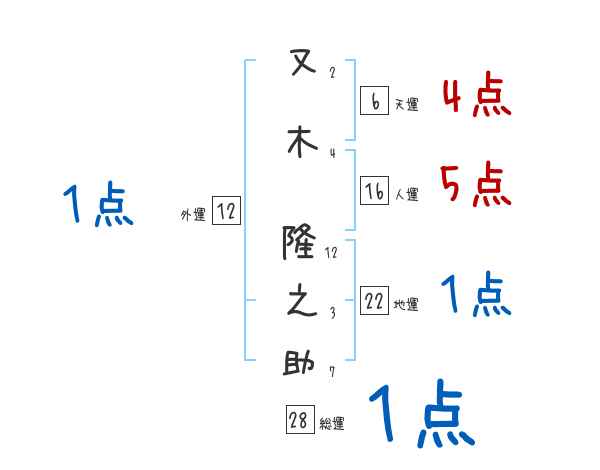 人運![]() | 又木隆之助さんの人運は16画の5つ星!人望が厚く大きく発展する。逆転成功が見える。 性格や才能などを表す2番目に重要な運勢です。人間関係や協調性、社会的な成功に影響します。主に20歳から50歳ぐらいまでの中年期の運勢を表します。 |