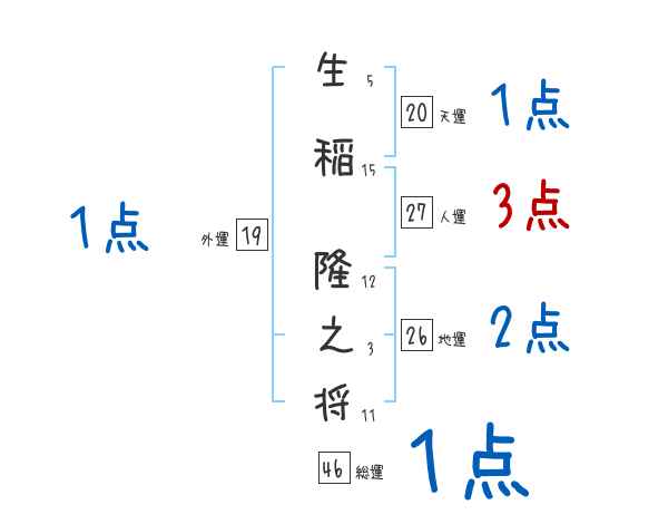 生稲隆之将さんの画数の鑑定結果