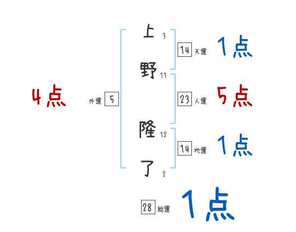上野隆了さんの画数の鑑定結果