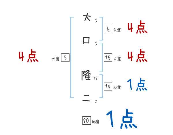大口隆二さんの画数の鑑定結果