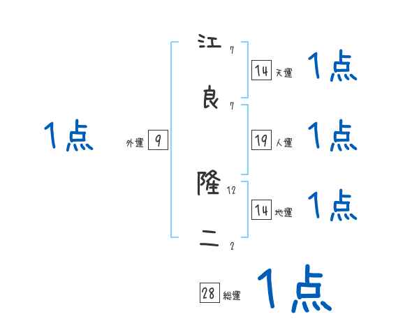 江良隆二さんの画数の鑑定結果