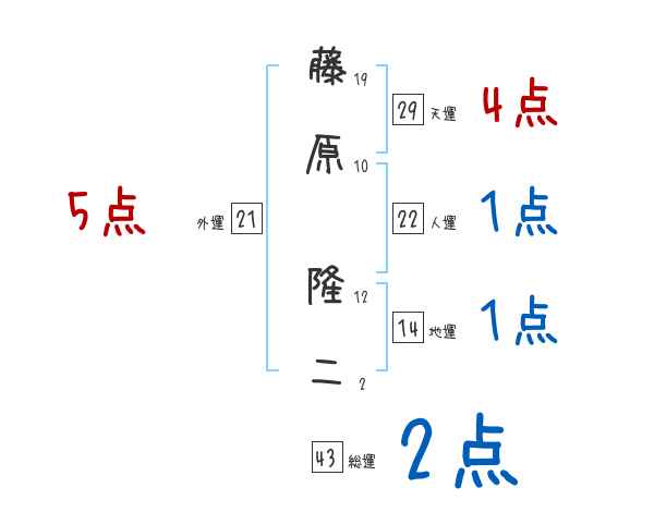 藤原隆二さんの画数の鑑定結果