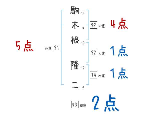駒木根隆二さんの画数の鑑定結果