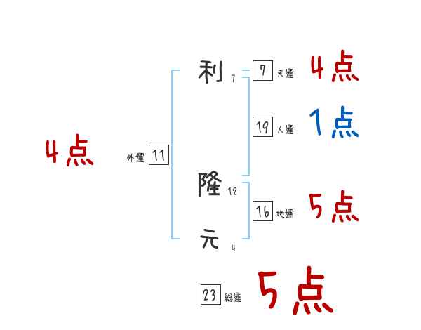 天運![]() | 利隆元さんの天運は7画の4つ星!強い意志や信念を持ち独立心が強い。自立する。 家系が持つ宿命的な運勢を表します。祖先から受け継いだ苗字ですので自分の力が及びません。家柄を象徴します。 |