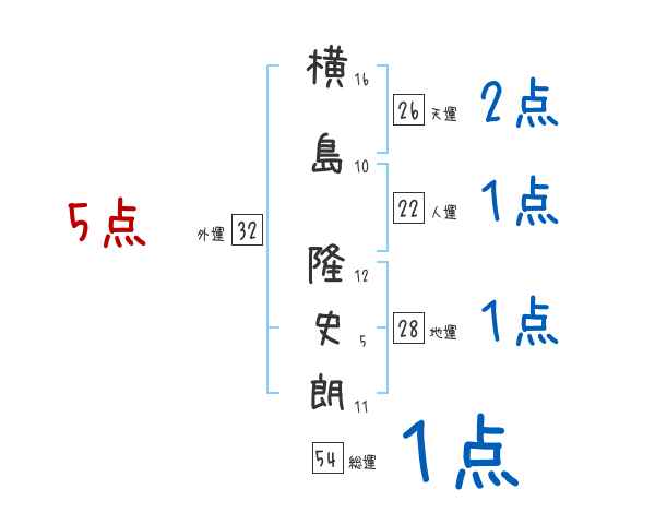 横島隆史朗さんの画数の鑑定結果